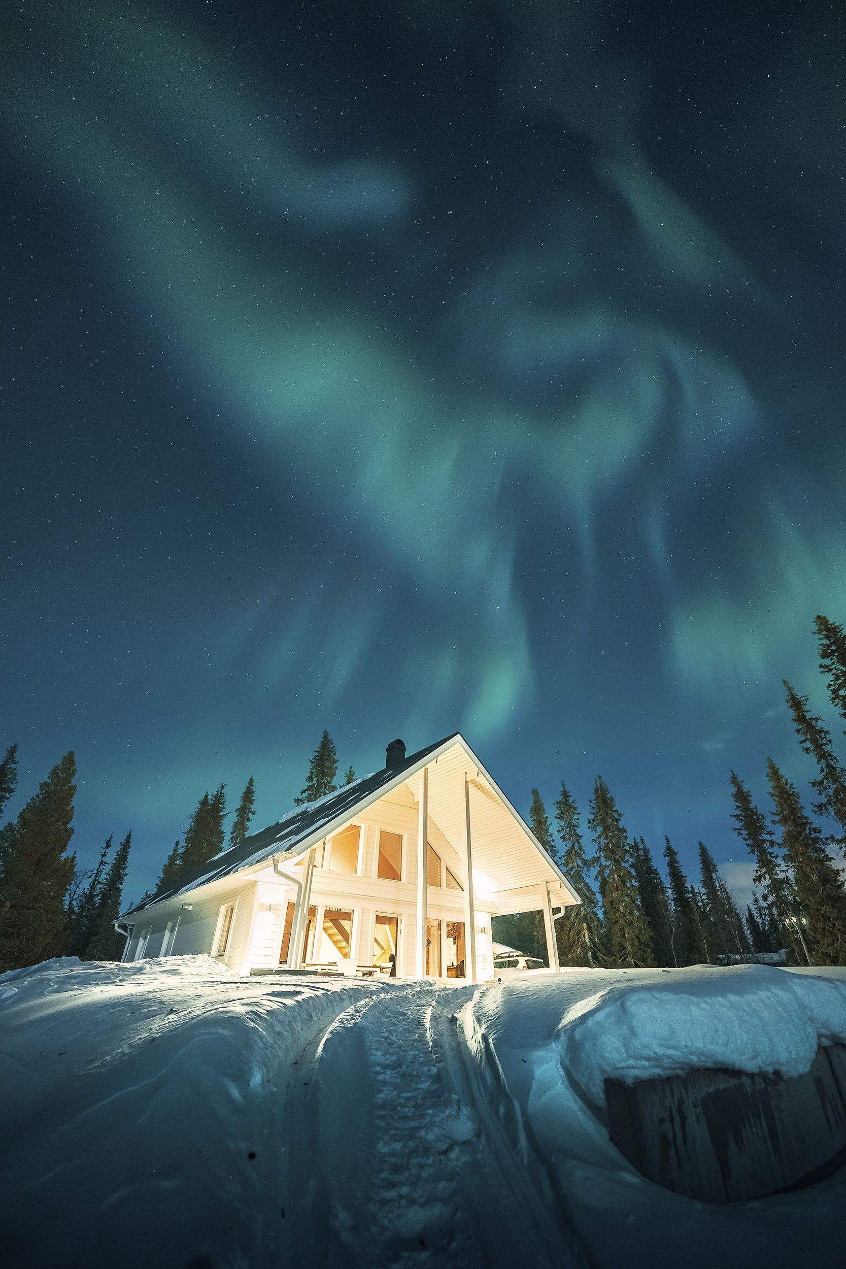 After 5 days of stormy weather, not only did the weather forecast clear, but the solar activity spiked, increasing the chances of the aurora borealis. “It was amazing the difference a few degrees made. We were standing on this frozen lake and there wasn’t a breath of air in the wind. You could hear the ice creaking and cracking as the temperature changed. It surprised me that the sound was exactly the same as a car door slamming shut.